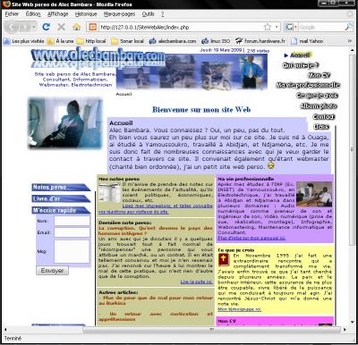 Bienvenue sur mon site web perso. Je m'appelle Alec BAMBARA, je réside à Ouagadougou au Burkina Faso et je suis ingénieur informaticien.